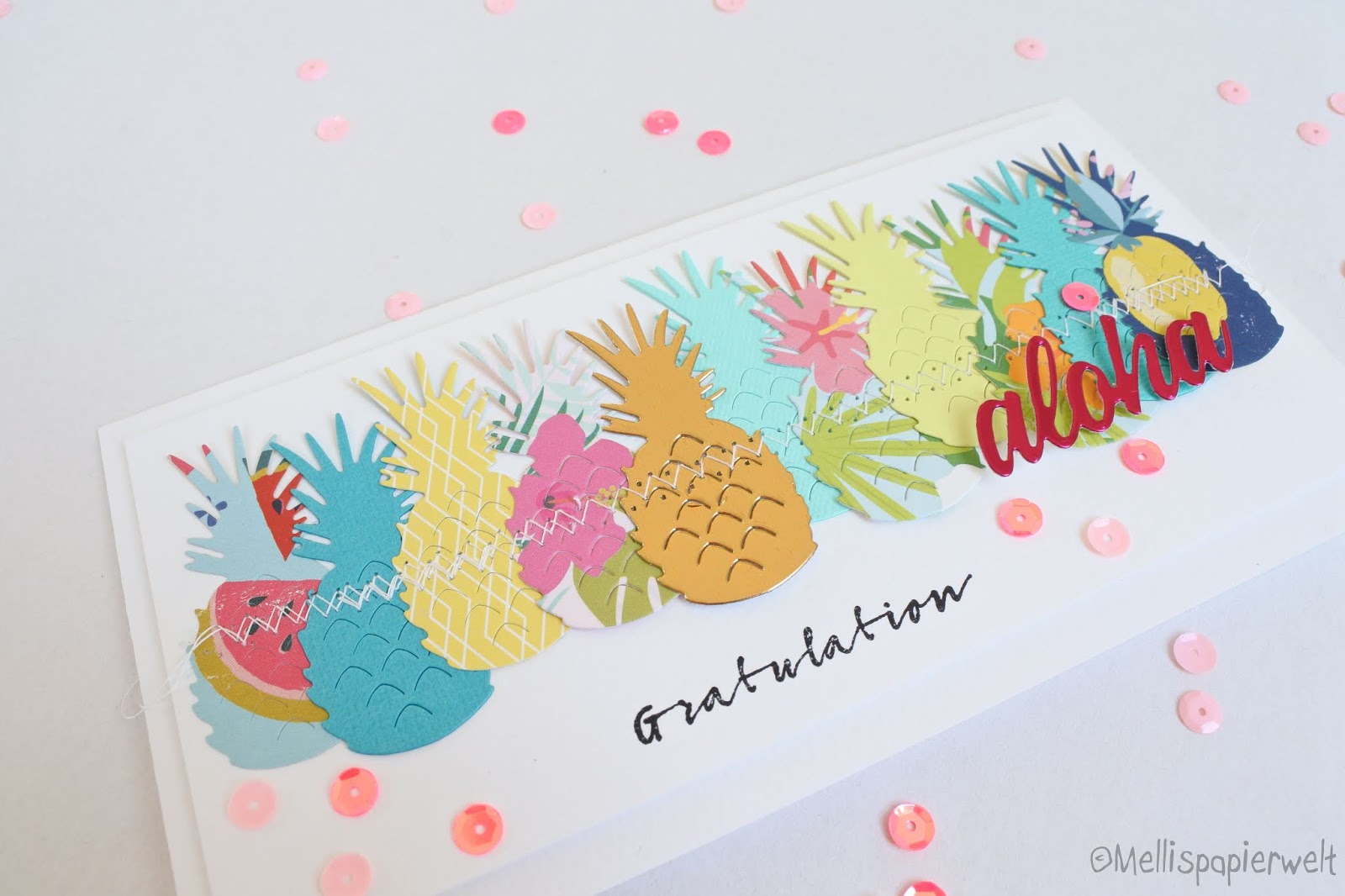 Wow, Melli! Ich bin begeistert! Deine Ananas-Karten sind der Hammer! Ich glaube, die brauche ich auch noch…und den Aloha Schriftzug…und den Flamingo….Hilfeeee!