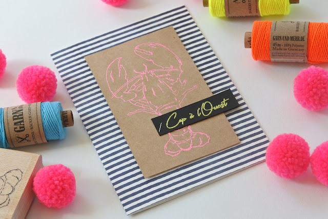 Wunderbar dein lobster in pink! Die Karte gefällt mir sehr, die Kombi mildem gestreiften Hintergrund ist klasse!