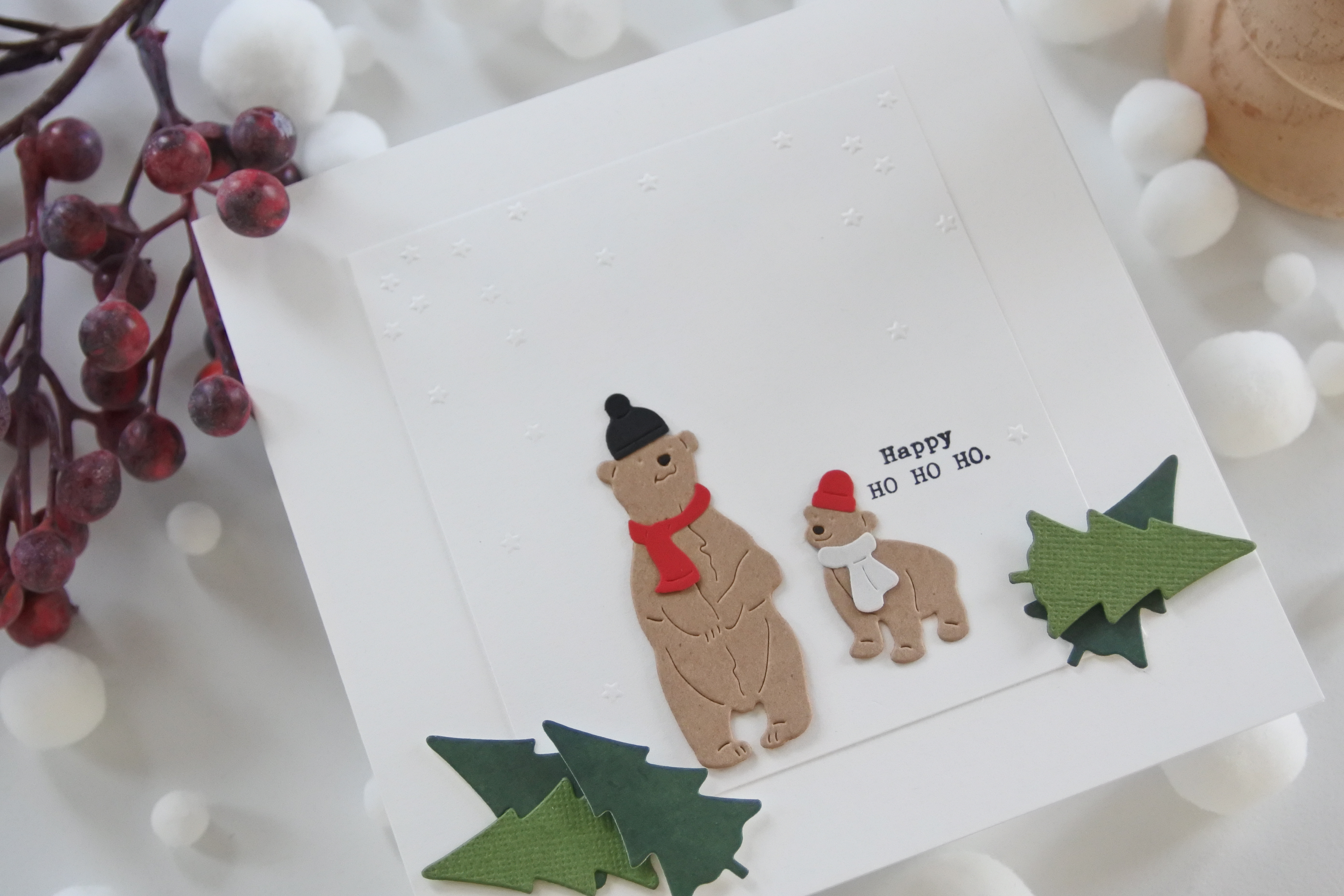 Wie hübsch, liebe Melli! So eine süße Karte, mit den kleinen Sternen und den knuffigen Bären… und die "windschiefen" Tannen passen da auch ganz wunderbar dazu! 😉 GLG Julia